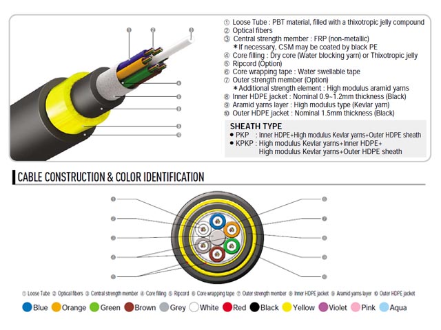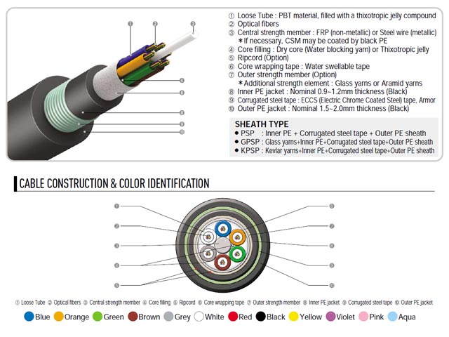 Double jacket, Single armor, UV stabilized, Water blocked, Rodent resistance, Anti-ballistic construction