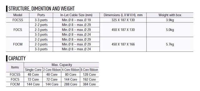 - Closures provide perfect solution for the protection of the junction point of optical fiber cable from environment